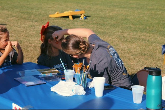 Among the most popular attractions was the dunk tank, where attendees eagerly lined up for the chance to dunk several of the school’s teachers and coaches. Laughter and cheers filled the air each time the target was struck, making it one of the event’s highlights. Guests could also enjoy a variety of other events, such as inflatable attractions, cornhole, and a face painting table.