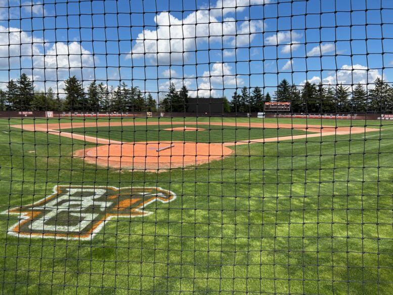 Highlighting a commitment to blending classroom learning and real-world experience at BGSU, Falcons senior infielder Sam Seidel, a graphic design major, custom-designed the stadium’s outfield padding.