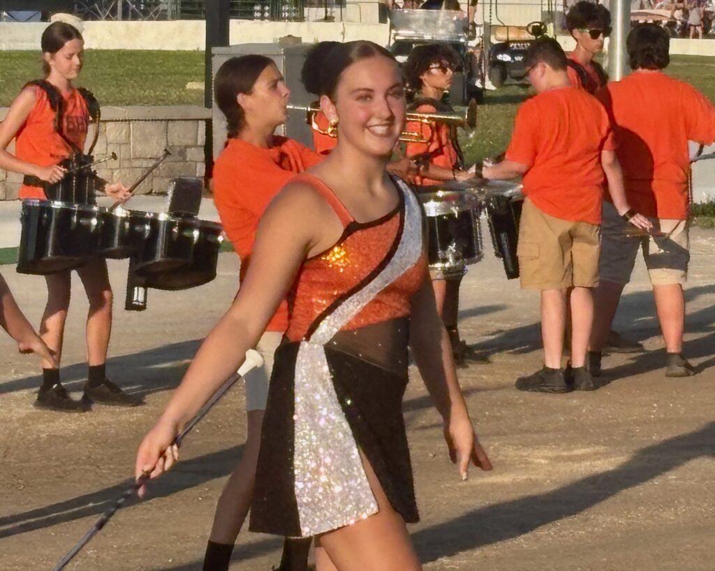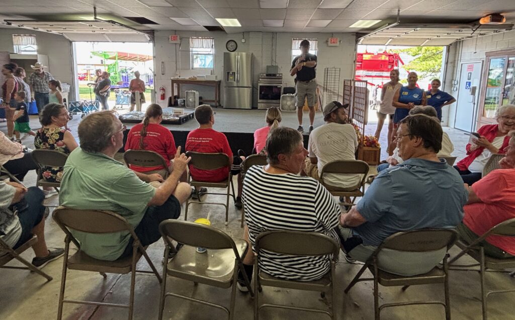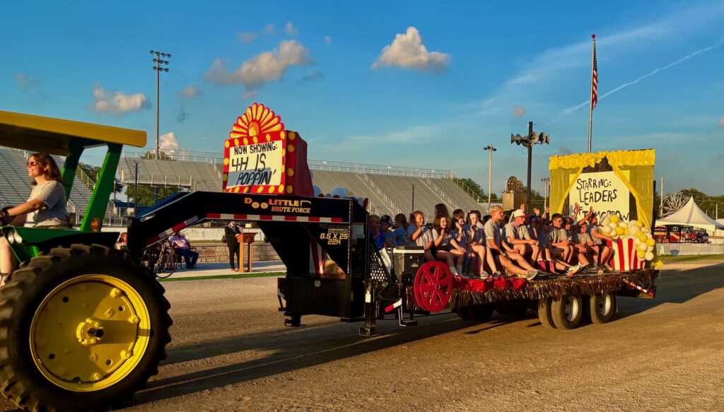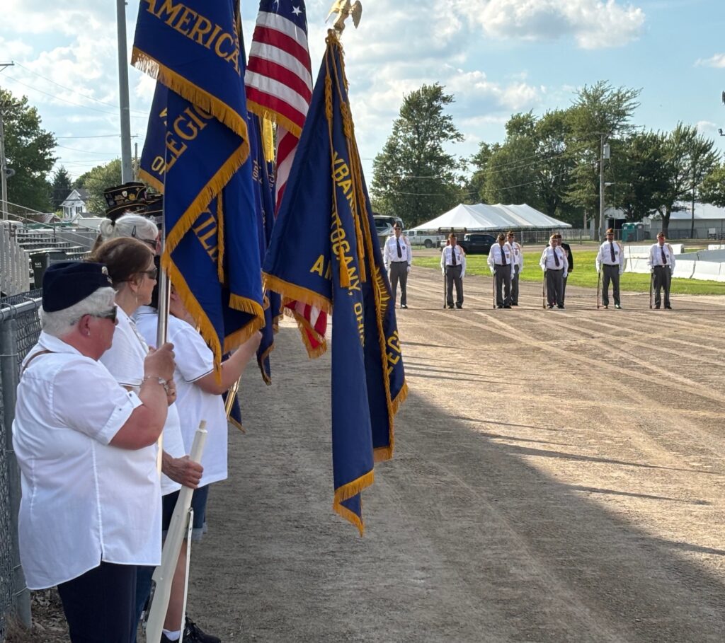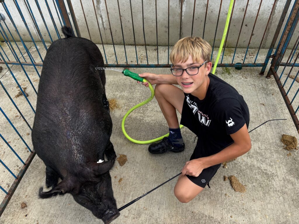 American Legion Posts from Wood County honored the local military members who lost their lives during the past year as part of the Post Everlasting ceremony, which helps kick off the Sunday night events in the grandstand.4-H is Poppin’ is the theme chosen by Farmers of Tomorrow 4-H Club for this year’s float in the Junior Fair Parade Sunday night and for their 4-H displayin the Junior Fair Building.Henry DeLematre, a member of Farmers of Tomorrow 4-H Club, spends some time cooling down one of the pigs he is showing at the Wood County Fairon Sunday when temperatures were in the high 80s with high humidity.Auctioneer Steve Powell begins his week of auctioneering at the Baked Goods Auction on Sunday night after the judging is completed in the Home & Garden Building.A North Baltimore High School twirler with the marching band smiles as she completes a successful catch of her baton during the Wood County Junior Fair Parade Sunday evening.