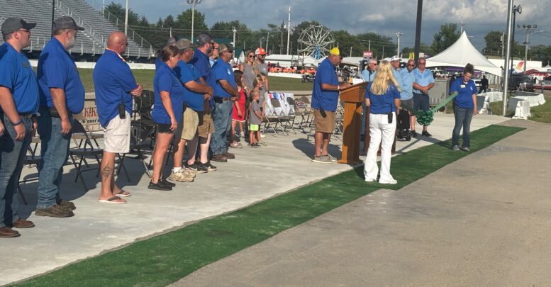 The Senior Fair Board and Northwestern Ohio Tractor Pullers Association joined forces with Tim Getz Family and K&K Construction to cu the ribbon on the new Winner's Circle on the first evening of he Fair.