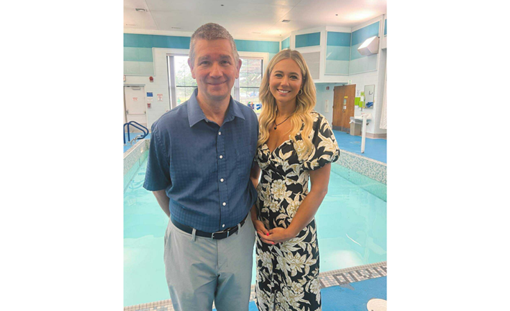 Perrysburg Rotarian Mike McGivern and Shannon Bova, Sunshine Communities Chief Philanthropy Officer, are pictured in front of the therapeutic pool.