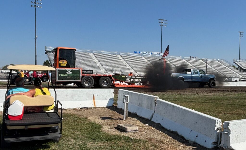 Jeep owners Bryan Spencer of Portage and Justin Cunningham of Defiance showed off their off-road vehicles as part of the festival’s convoy. They started at Culver’s on the south end of town and rumbled through downtown on the way to the 10 a.m. start at the fairgrounds, where they lined up their 4X4s along the track in front of the pulling field.