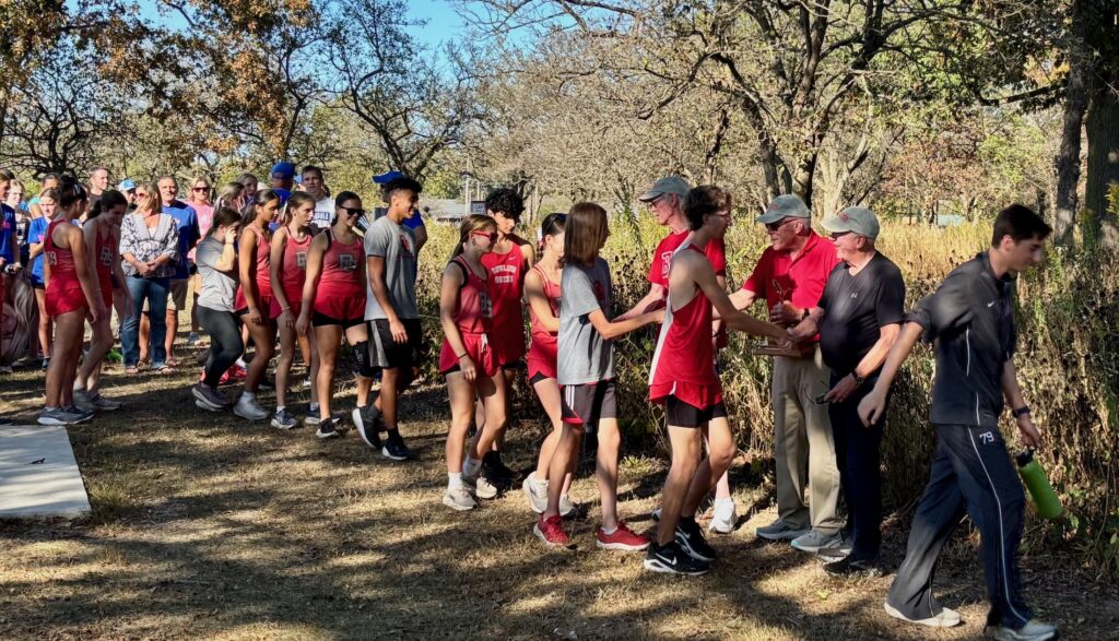 At the end of the presentation and before senior night recognitions, Carney had all of his team members shake hands with the three legends in BGHS cross country history. Sheffer, Claflin and Cheek appreciated the effort, noting the leadership and lessons of a good coach continues for the BGHS cross country team.