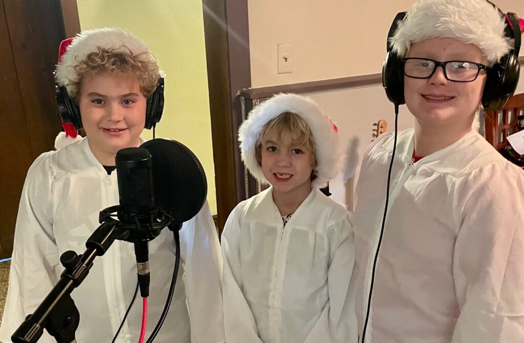 Boos is accompanied by groups on two of the songs. The “children’s choir” lent their angelic voices to one carol. “They are my children and nephew, so they really didn’t have a choice,” McDonald confessed.