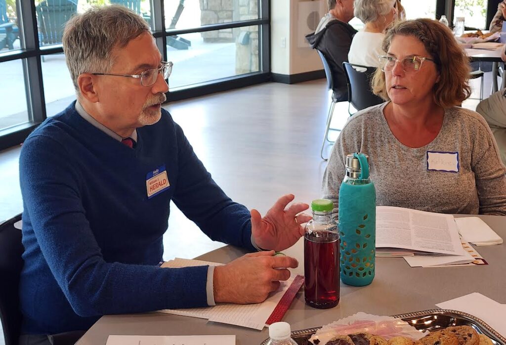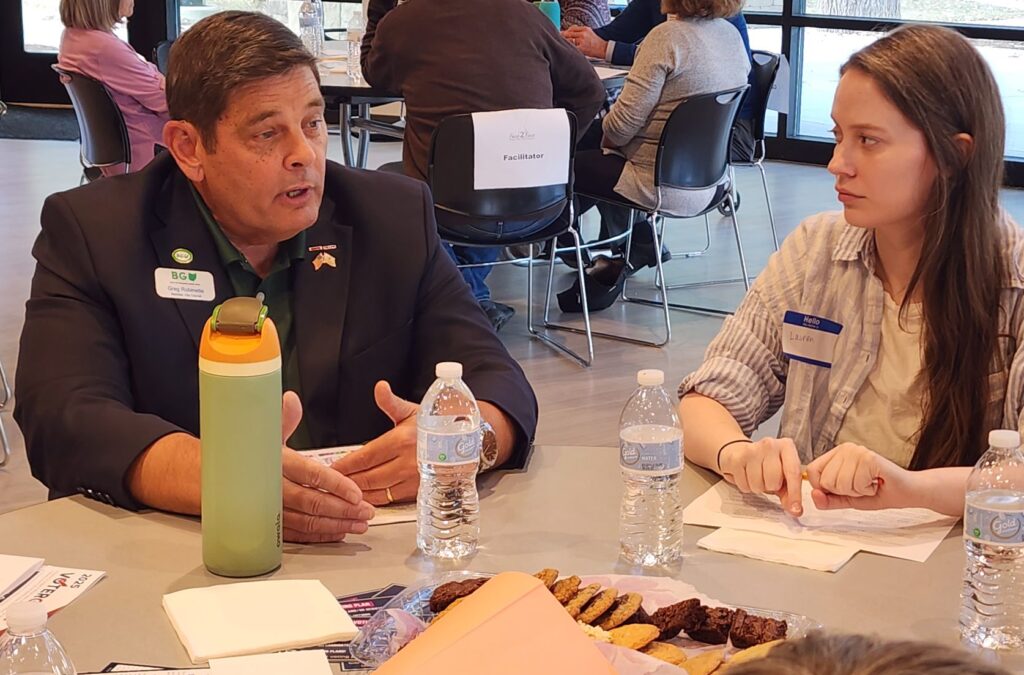 The format, organized by the League of Women Voters of BG, gave each table of six or so citizens 10 minutes with each candidate, as they moved from one group to the next.