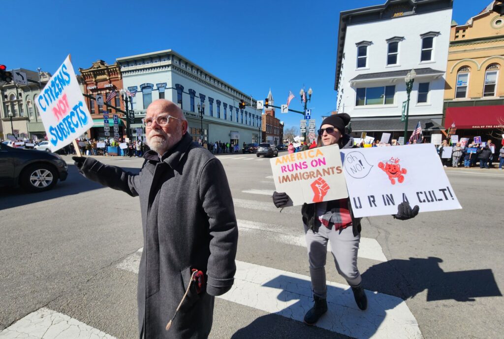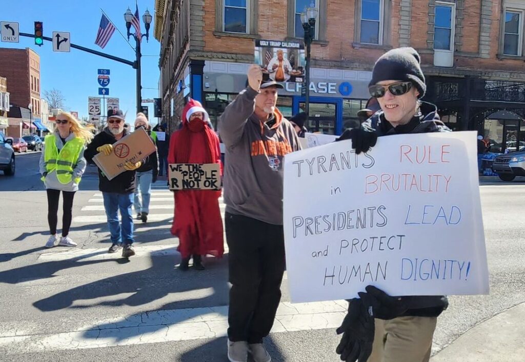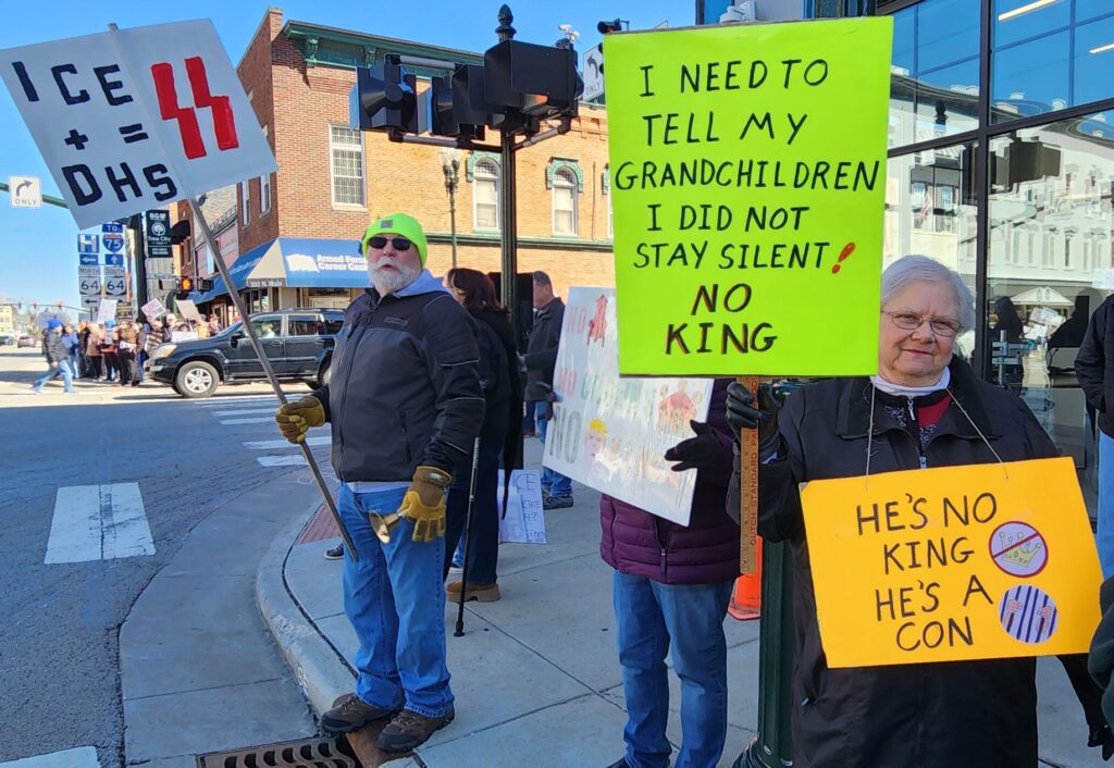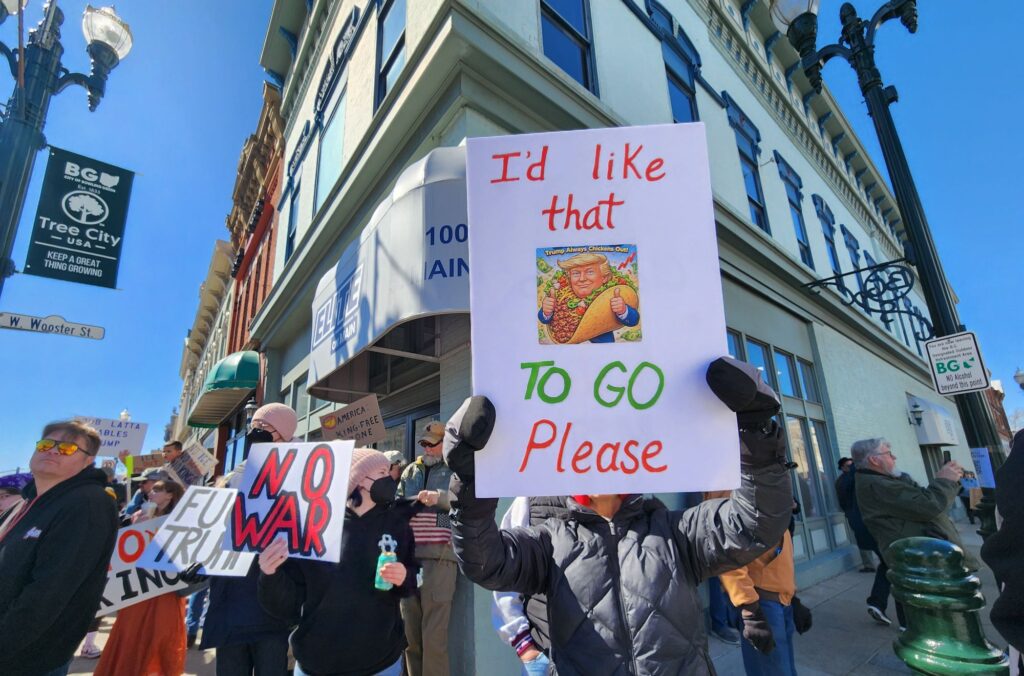 A retired teacher, college student, farmer, veteran, business owner, pastor, health care worker and accountant took their spots along Bowling Green’s streets on Saturday. They protested the cruel actions of ICE, the illogical tariffs, the unnecessary war in Iran, the incomplete release of the Epstein files, and much more.