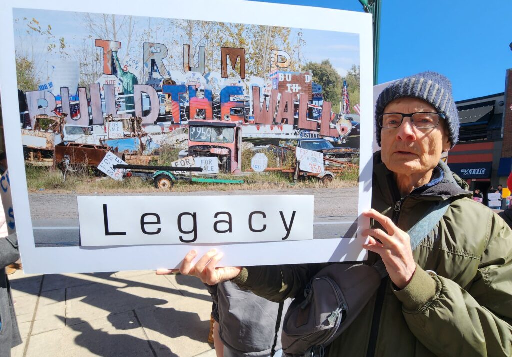 “I’m not happy with the way our country is being run. I don’t like people who lie,” she said. Overholt said millions of Americans are hurting, while the Trump family is making billions off of the presidency and turning his back on U.S. allies.