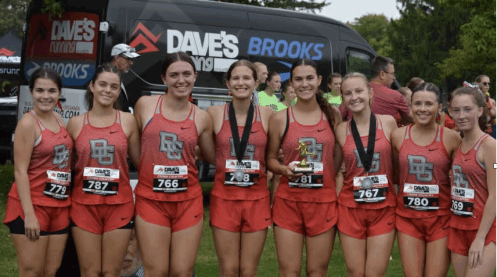 “They played “leapfrog” with each other all while passing other teams. It was an incredible display of team running,” Carney reported. BG was 15th at the 1 mile mark with 363 points, and 5th at the 2 mile mark with 250 points. They crossed the line in 2nd with 190 points. The pack closed the gap on Sam and all runners closed in on the the finish line as a team
