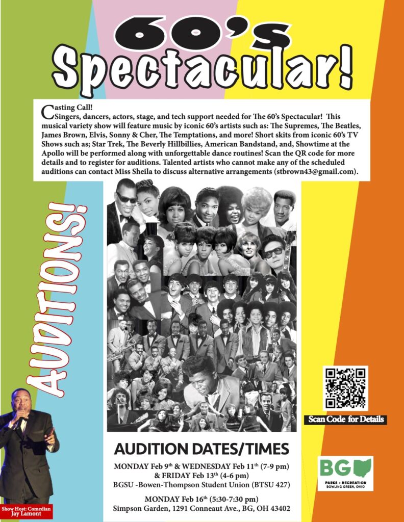 “We are searching for both seasoned and raw talent,” Brown said. “Many of the 1960’s icons were teenagers and young adults at the height of their popularity.” So Brown is working with Bowling Green High School and BGSU to find talent.