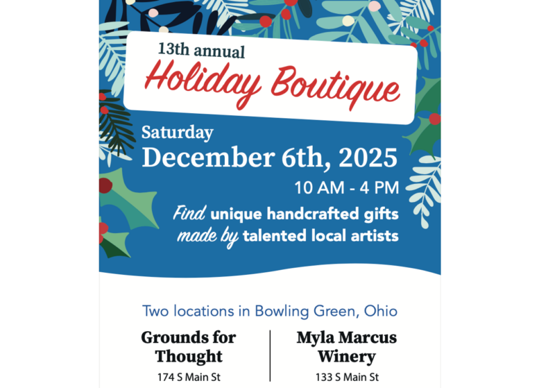 artisans, Community Voices, holiday December 4, 2025 More than 20 artists to be featured at ‘Holiday Boutique’ in downtown BG … Posted by: Lindsay-Jo Douglas on December 4, 2025. Read More