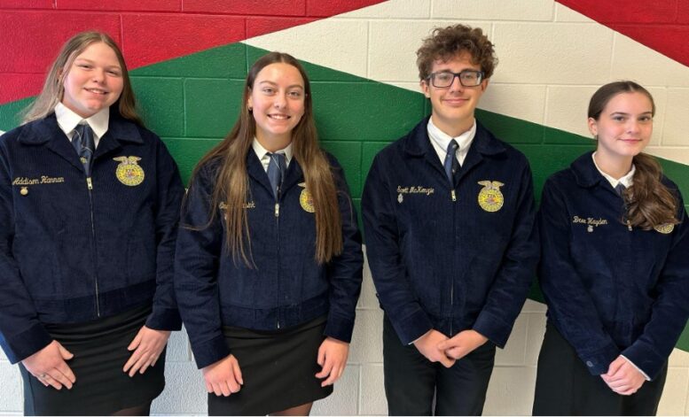 Four Eastwood FFA members made it to the District Public Speaking Contest including (from left to right) Addison Hannan, Emery Wensink, Scott McKenzie, and Bree Hayden. (Photo provided)
