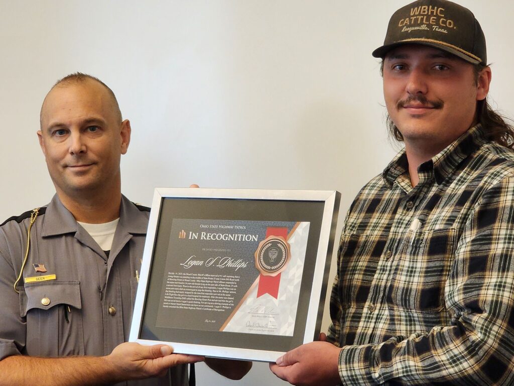“This was a shining example of the impact a good Samaritan can have in the community,” Ohio State Patrol Lt. Matt Geer said as Phillips was recognized Thursday at the patrol headquarters north of BG.