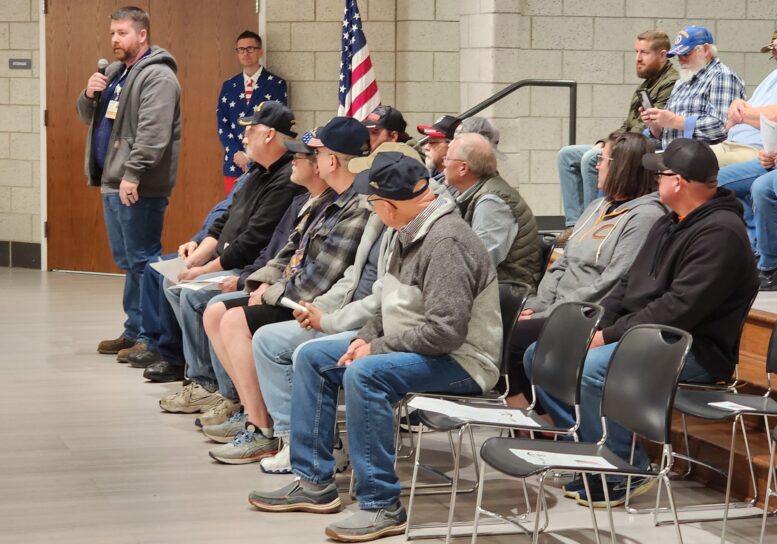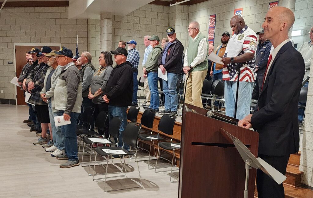 The stage was full of veterans who served in the U.S. Army, Navy, Marines, Air Force and Coast Guard.