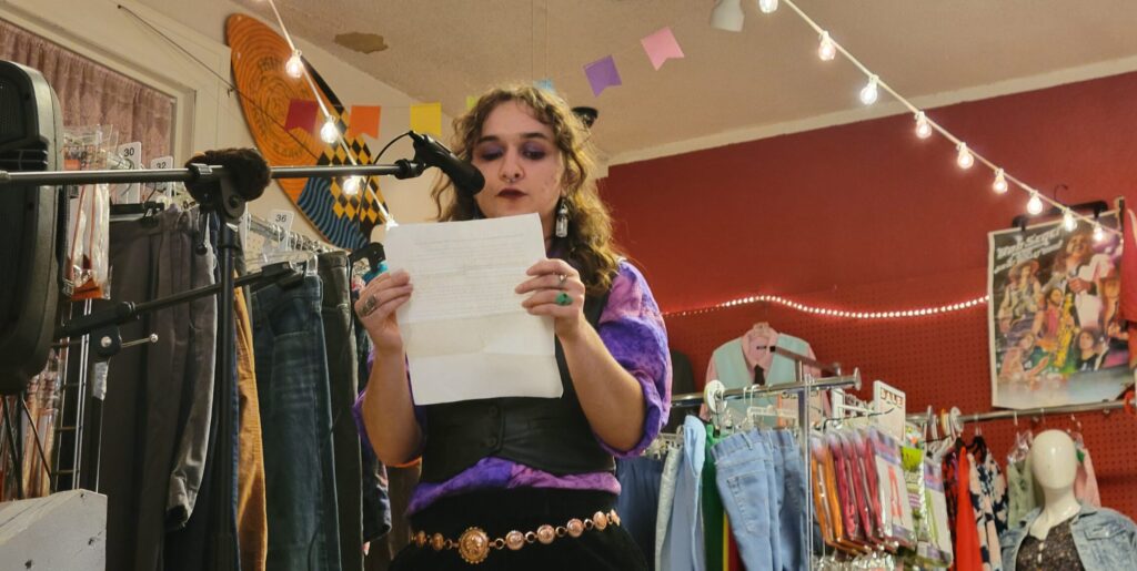 Musicians and poets took to the stage throughout the night, many of which shared their gratitude to be in community with fellow trans people. A few calls to action were issued – support trans loved ones, buy their work, and loudly resist the ongoing moral panic threatening their lives.