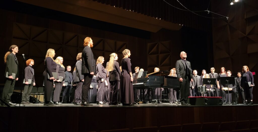 The Collegiate Chorale’s half of the concert was programmed around themes of faith, comradery, and liberation. Their first piece, Ily Matthew Maniano’s “Papuri,” revolved around the repetition of “Papuri sa Diyos,” or “Praise the Lord” in Filipino. Following that was a song set to the text of a W.E.B. Dubois poem titled “Children of the Moon” by BGSU alum Evan Williams.