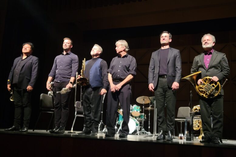 The first half of their concert featured two world premieres, Tom Nazziola’s “Mad Clown” and Armando Bayolo’s “Dystopian Moods.” The unconventional addition of drums expanded their range of timbres – the snap of a snare drum and sizzle of rolled cymbals complimented the warm blend of brass very well.