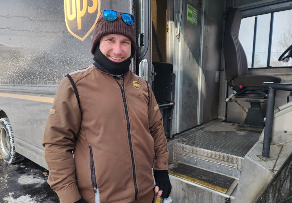 His secret for staying warm – pull on multiple layers, keep moving, and wear heated socks. Dotts said he actually keeps warm enough on his route that he sometimes leaves the door open on his delivery truck as he travels through some residential areas.
