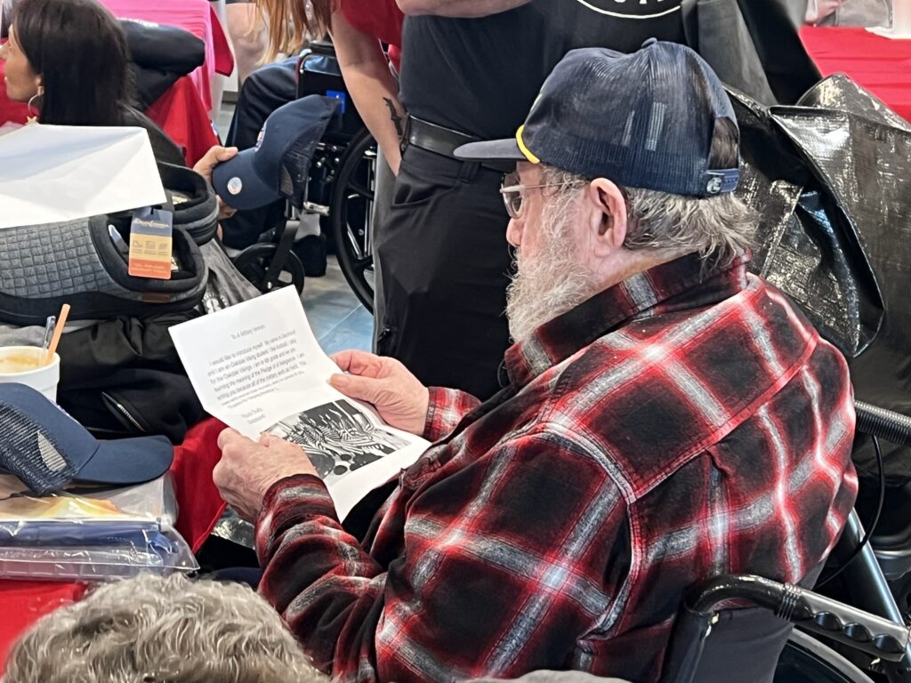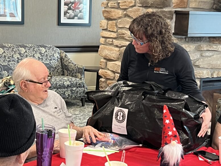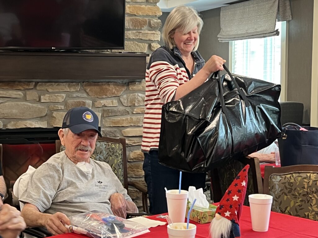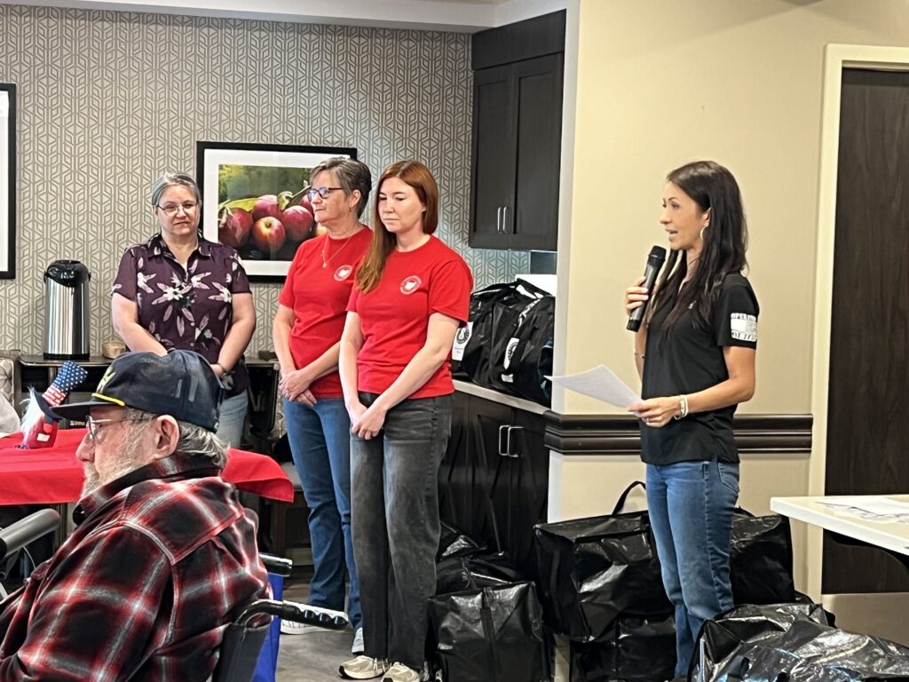 Upon arrival, veterans were greeted with root beer floats from Sincere Hospice. Once the program began, each veteran was recognized by name and branch in which they served. In addition to the Operation Outfit bag, veterans were given stars from retired flags and goodie bags from the Wood County Veteran’s Affairs Office to thank them for their service. The Operation Outfit bags were funded by Principle Business Enterprises.