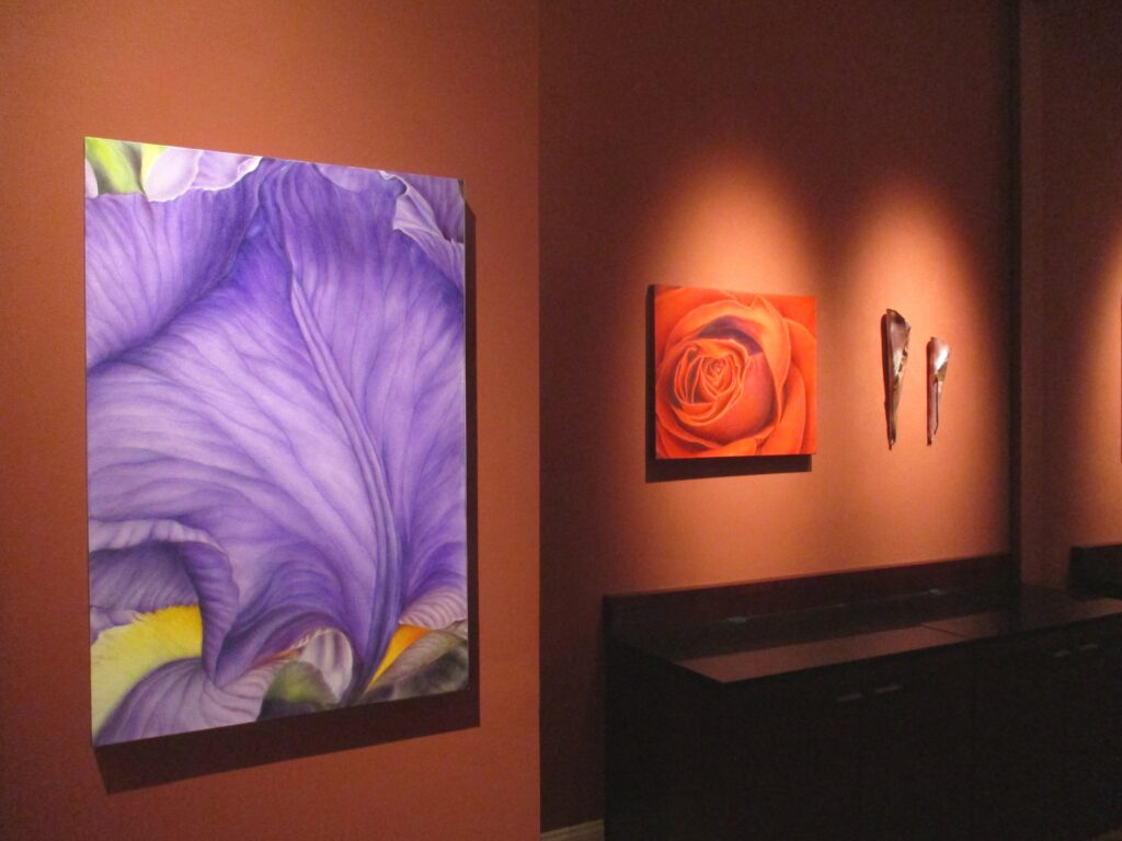 “It’s not so much that they’re flowers,” Dawson said. “It’s nature and the organic shapes, and the color. That’s really what drew me. Like my sculpture, my paintings are very organic, and they move, like nature. They’re very sensuous. But nature is like that, the way things move together and blend in. It’s a subject matter that I like, that has a lot of range to it in terms of color and movement.”
