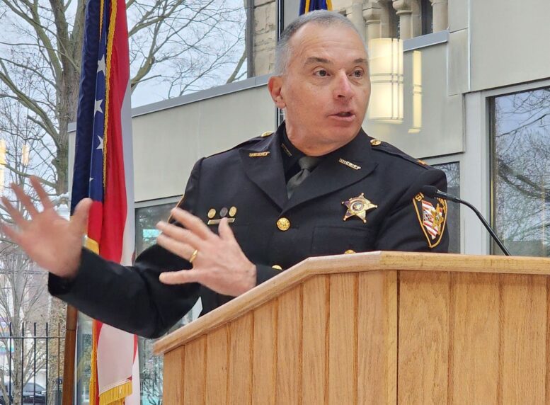 File photos of Wood County Sheriff Mark Wasylyshyn speaking at State of the County Address in 2024.