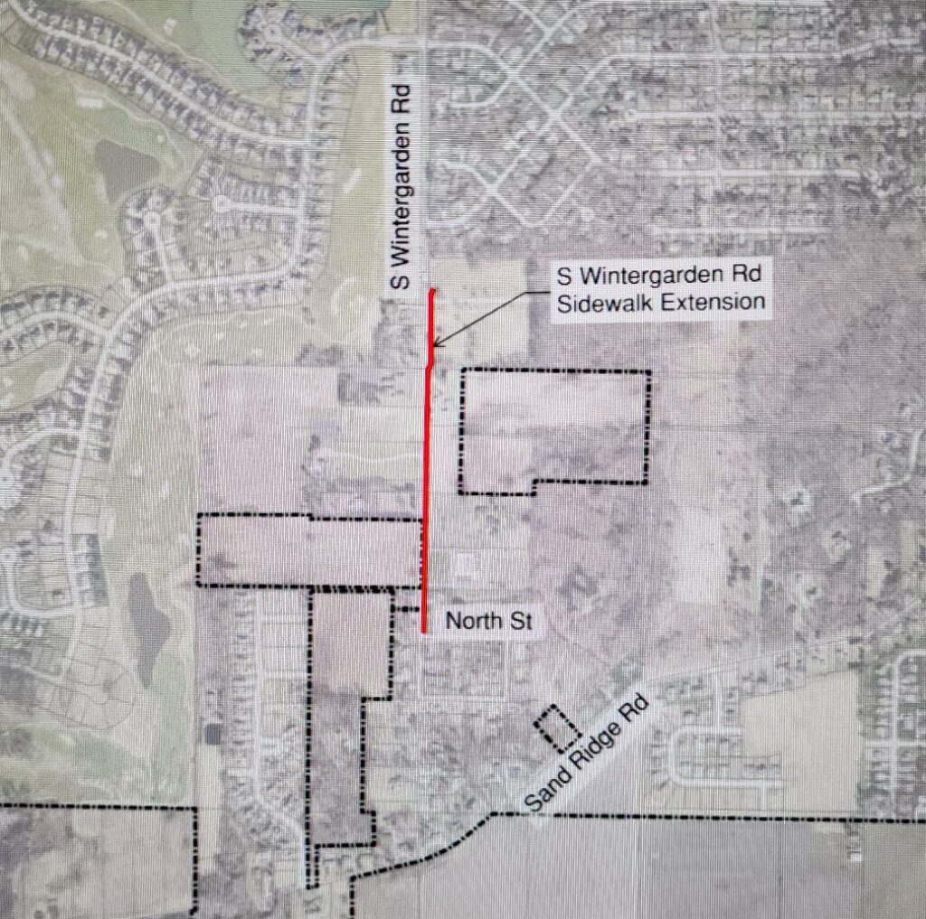 The Wintergarden pedestrian and bicycle sidewalk will be constructed on the east side of the road. It will link North Street to the entrance of Wintergarden Park, and the existing sidewalk in front of the park, which is already connected to sidewalks reaching much of the city.