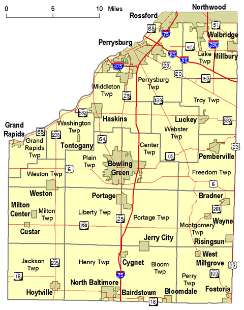 The two townships completely unzoned are Montgomery Township, which surrounds Bradner and Wayne, and Jackson Township, which is in the southwest corner of the county.