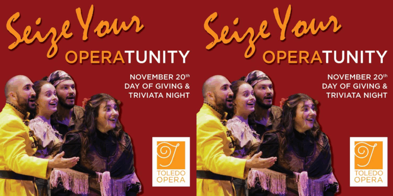 Toledo Opera will hold its annual “OPERAtunity Day” on Thursday, Nov. 20. It is a community-wide day of giving in support of the company’s mission to enrich lives in the region through the power of opera. The celebration will culminate that evening with “Triviata Night,” which will take place at Toledo Spirits, 1301 N. Summit St., Toledo, and will feature general-knowledge trivia with an operatic twist.