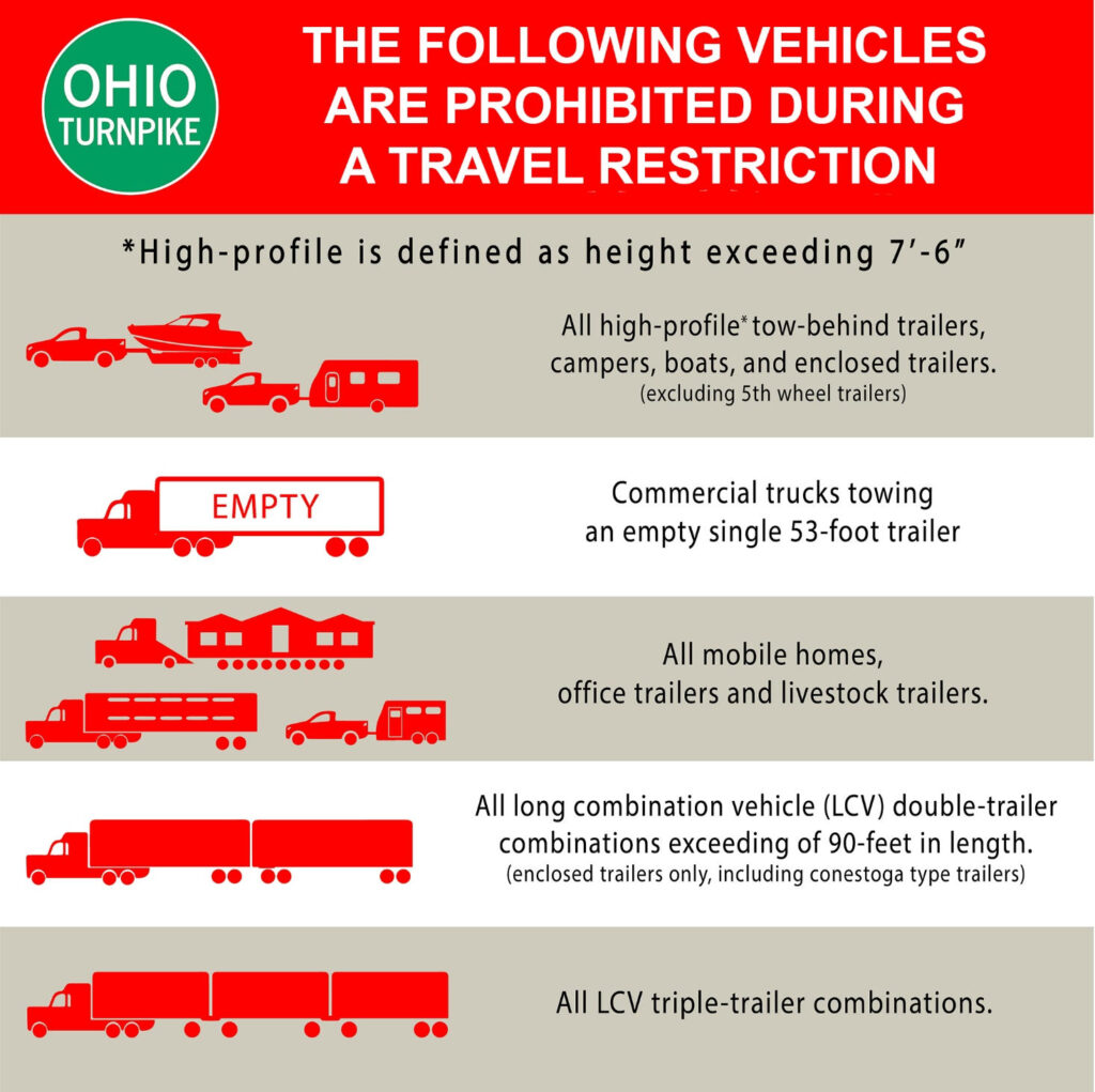 The following types of vehicles are prohibited from traveling on the Ohio Turnpike during the travel restriction period: