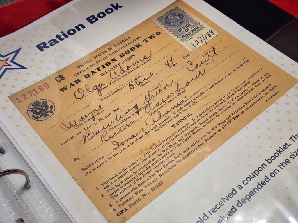 A war ration book for a Wayne woman issued by Bowling Green rationing board.