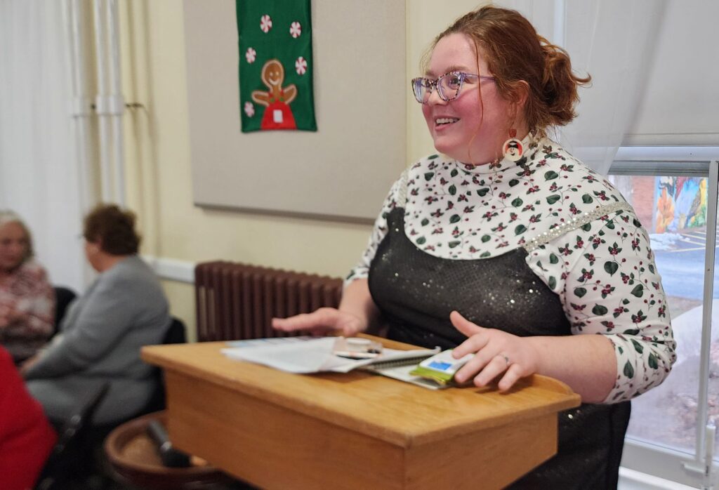 Alyssa Garland talks about rationing during World War II at a recent tea at the Wood County Museum.